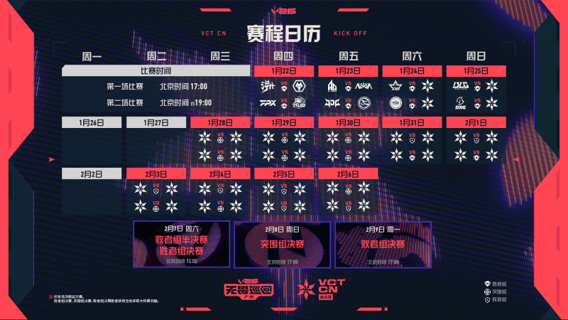 启点赛将初次引入三败裁汰造2026 VCT CN联赛额V26无畏巡回首站广州开启启点,场BO5表除结尾三,均为BO3其余竞赛。三败即被裁汰步队累计得到。